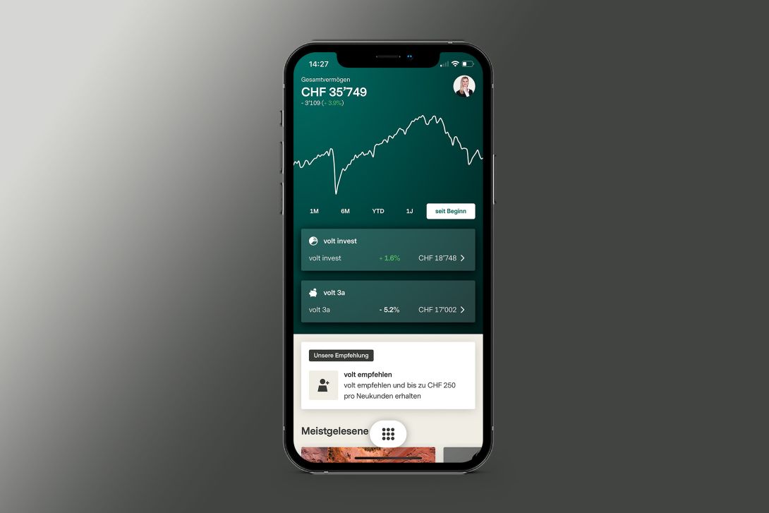 Mit der volt App lässt sich einerseits ein Investmentportfolio zusammenstellen und andererseits auch in der Säule 3a vorsorgen. Los geht's: