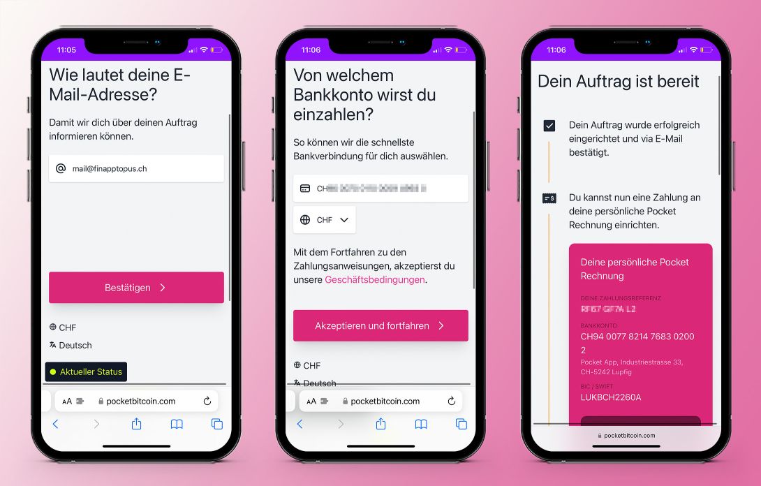 Mit Pocket lässt sich einfach Bitcoin kaufen und an die eigene Wallet schicken. Und das ohne aufwendige Verifizierung der eigenen Identität. Wir haben den Schweizer Service getestet.